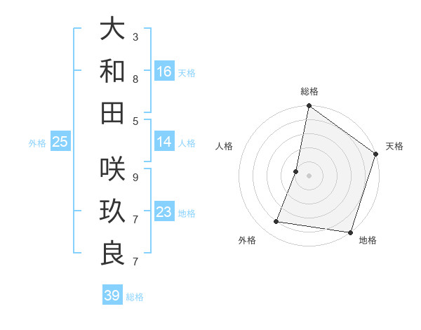 大和田 咲玖良さんを姓名の画数から五運を鑑定