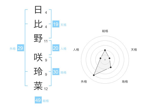 日比野 咲玲菜さんを姓名の画数から五運を鑑定