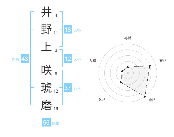 井野上 咲琥磨さんを姓名の画数から五運を鑑定
