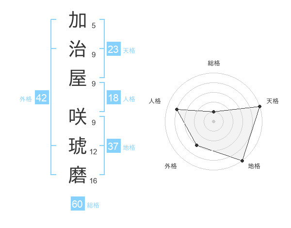 加治屋 咲琥磨さんの天格は23画の5点