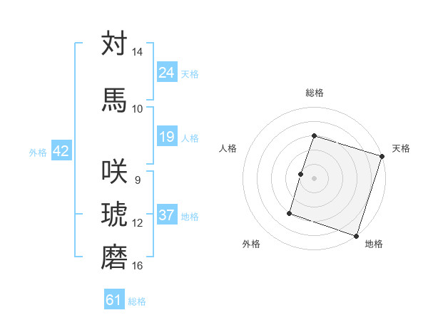 対馬 咲琥磨さんを姓名の画数から五運を鑑定