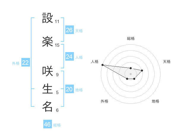 設楽 咲生名さんの天格は26画の2点!