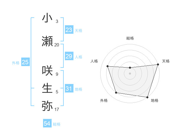 小瀬 咲生弥さんを姓名の画数から五運を鑑定
