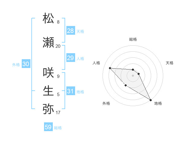 松瀬 咲生弥さんの地格は31画の5点!