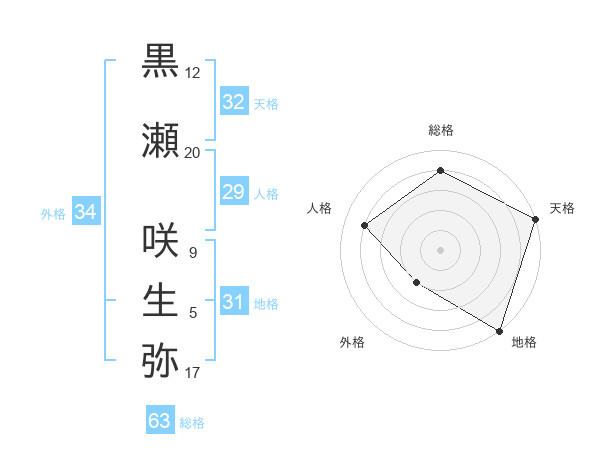 黒瀬 咲生弥さんの天格は32画の5点!