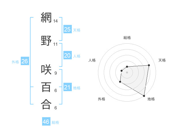 網野 咲百合さんの天格は25画の4点!