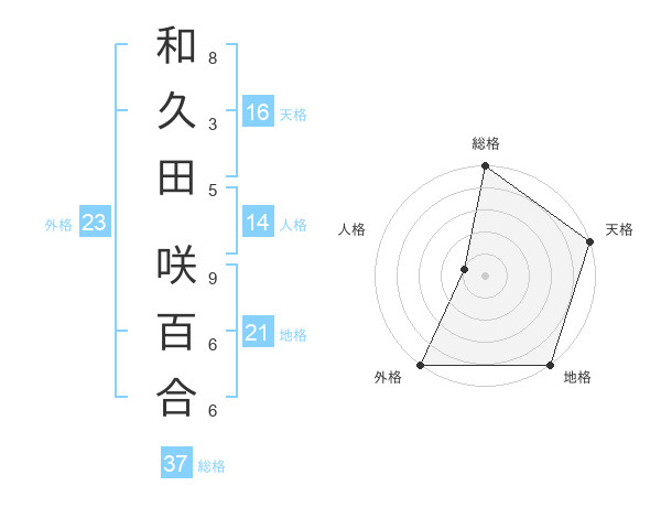 和久田 咲百合さんを姓名の画数から五運を鑑定