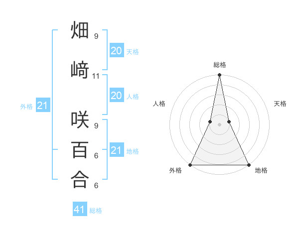 畑﨑 咲百合さんの外格は21画の5点!