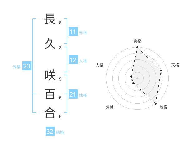 長久 咲百合さんの総格は32画の5点