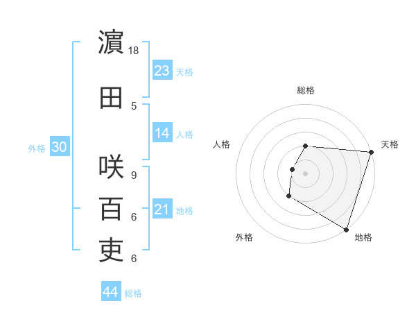 濵田 咲百吏さんを姓名の画数から五運を鑑定