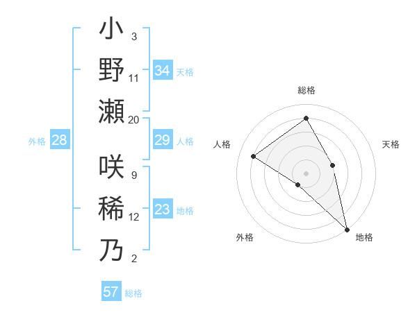 小野瀬 咲稀乃さんの天格は34画の2点!