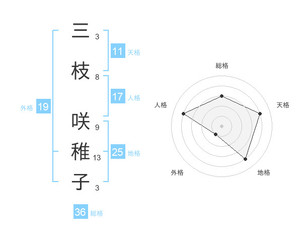 三枝 咲稚子さんの天格は11画の4点!
