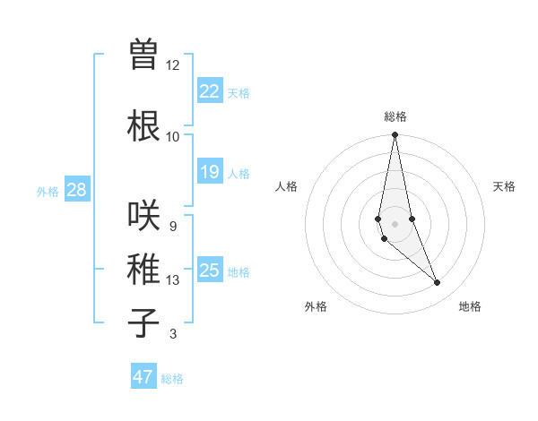 曽根 咲稚子さんを姓名の画数から五運を鑑定