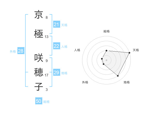 京極 咲穂子さんの天格は21画の5点!