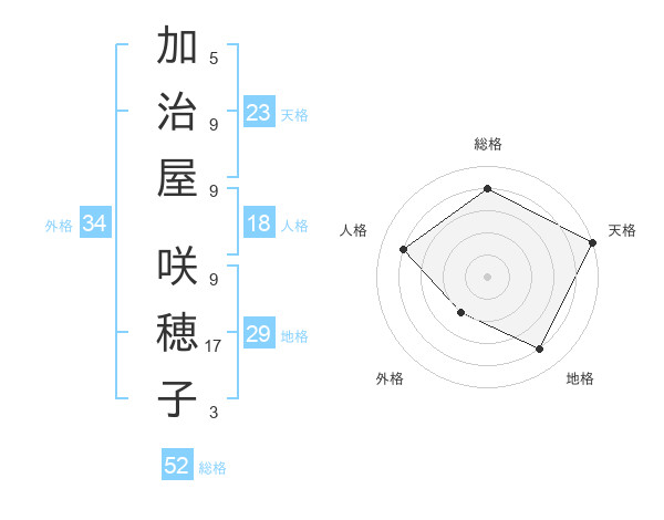 加治屋 咲穂子さんを姓名の画数から五運を鑑定