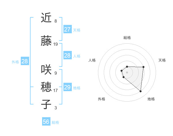 近藤 咲穂子さんを姓名の画数から五運を鑑定