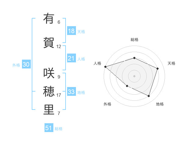 有賀 咲穂里さんの総格は51画の3点!