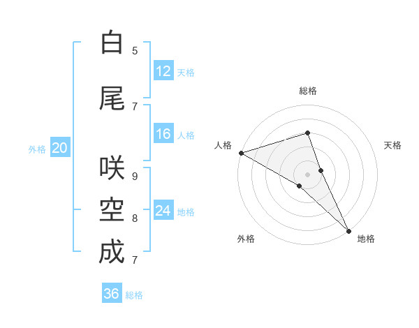 白尾 咲空成さんの天格は12画の1点!