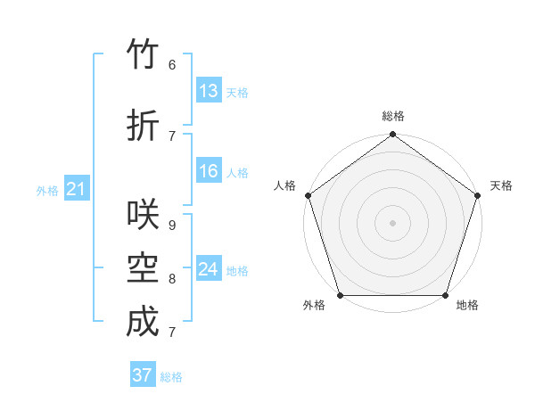 竹折 咲空成さんを姓名の画数から五運を鑑定