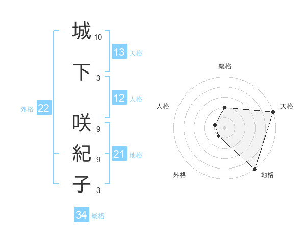 城下 咲紀子さんの天格は13画の5点!