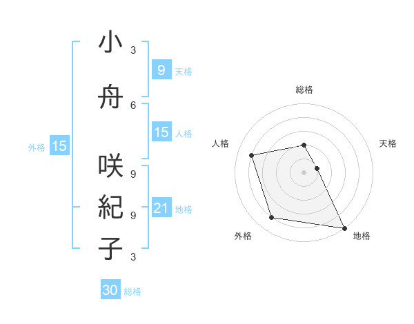 小舟 咲紀子さんの外格は15画の4点!