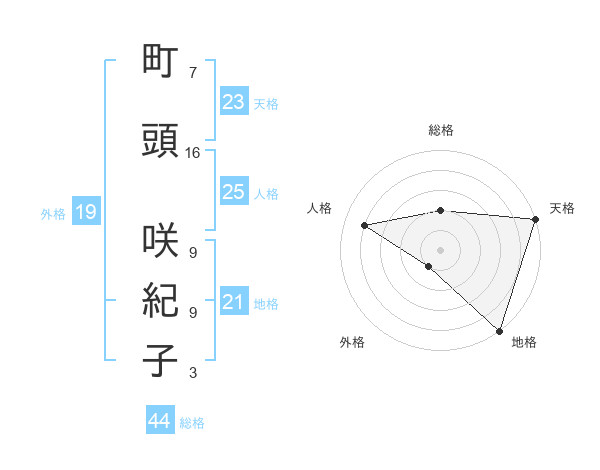 町頭 咲紀子さんの天格は23画の5点!