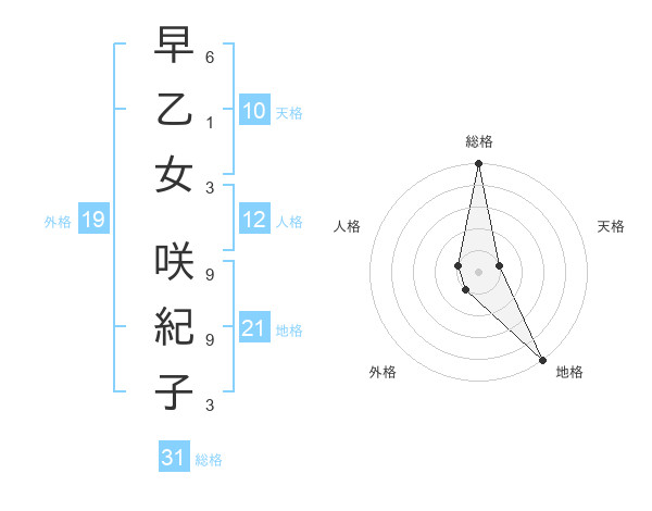 早乙女 咲紀子さんを姓名の画数から五運を鑑定