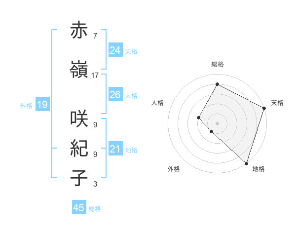 赤嶺 咲紀子さんの総格は45画の4点!