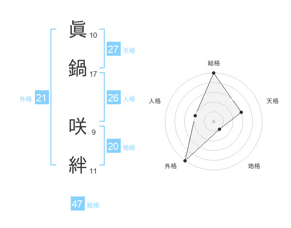 眞鍋 咲絆さんを姓名の画数から五運を鑑定