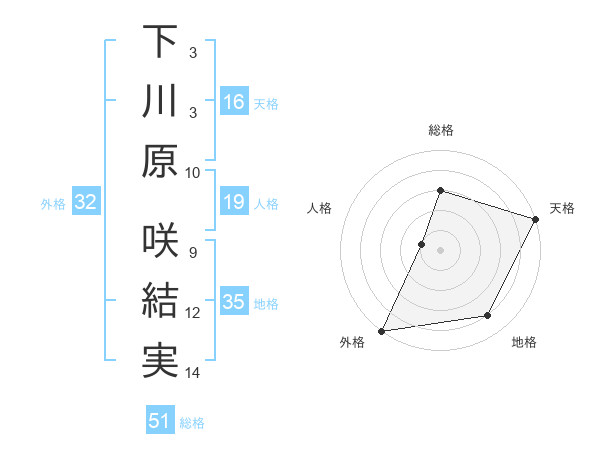 下川原 咲結実さんを姓名の画数から五運を鑑定