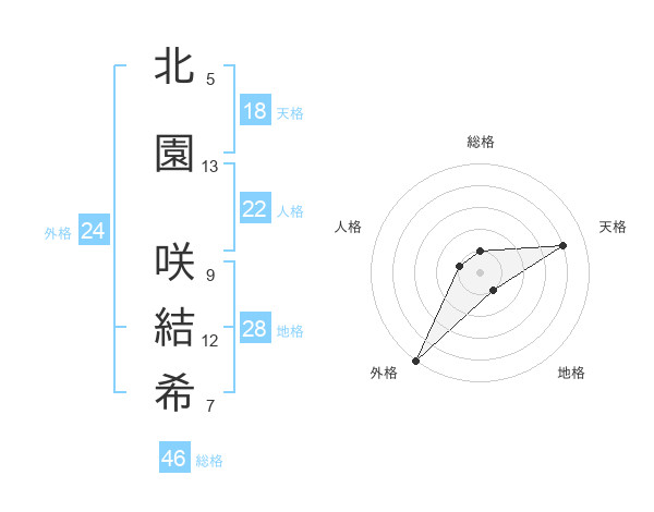 北園 咲結希さんの天格は18画の4点!