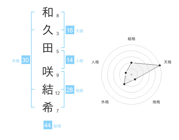 和久田 咲結希さんを姓名の画数から五運を鑑定