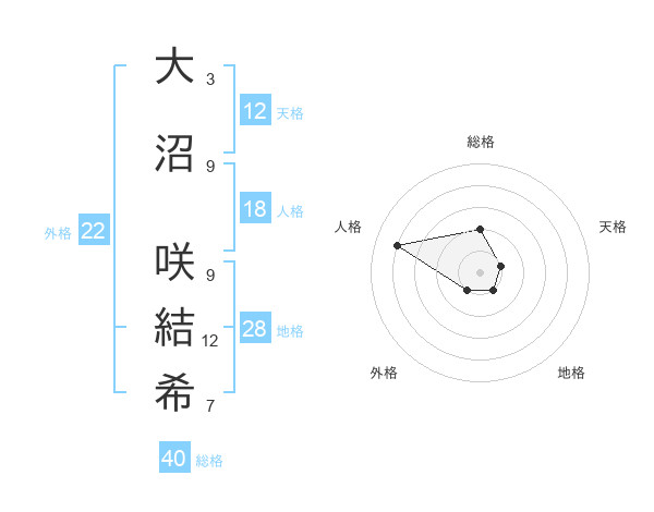 大沼 咲結希さんを姓名の画数から五運を鑑定