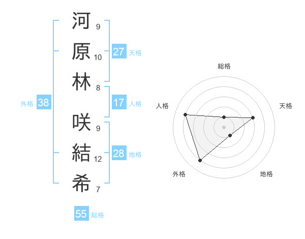 河原林 咲結希さんを姓名の画数から五運を鑑定