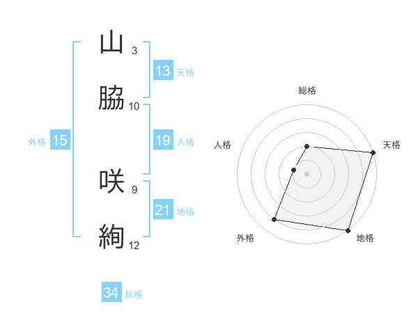 山脇 咲絢さんを姓名の画数から五運を鑑定
