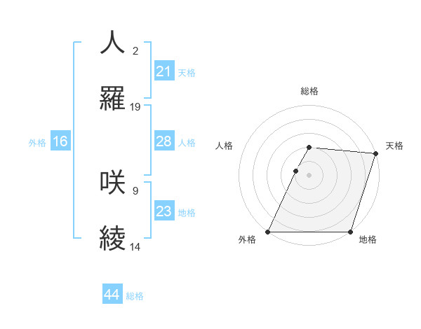 人羅 咲綾さんの天格は21画の5点!