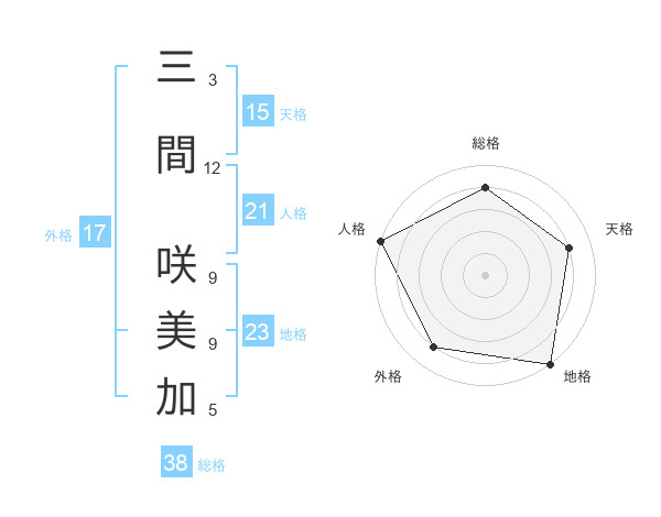 三間 咲美加さんを姓名の画数から五運を鑑定