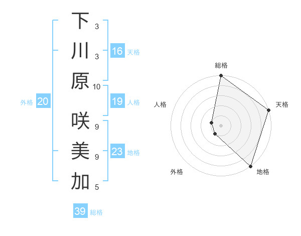 下川原 咲美加さんを姓名の画数から五運を鑑定