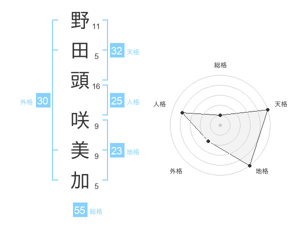 野田頭 咲美加さんを姓名の画数から五運を鑑定