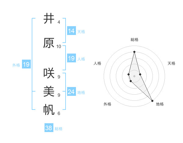 井原 咲美帆さんの総格は38画の4点