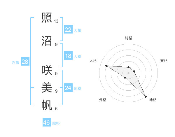 照沼 咲美帆さんの天格は22画の1点!