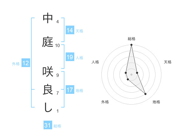 中庭 咲良しさんを姓名の画数から五運を鑑定