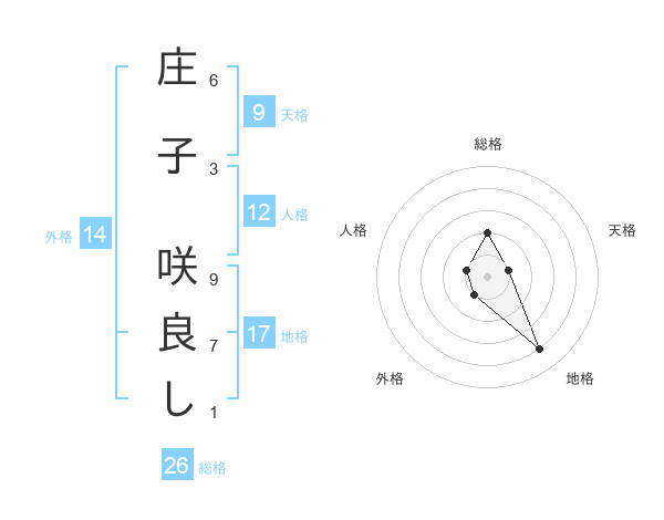 庄子 咲良しさんの総格は26画の2点!