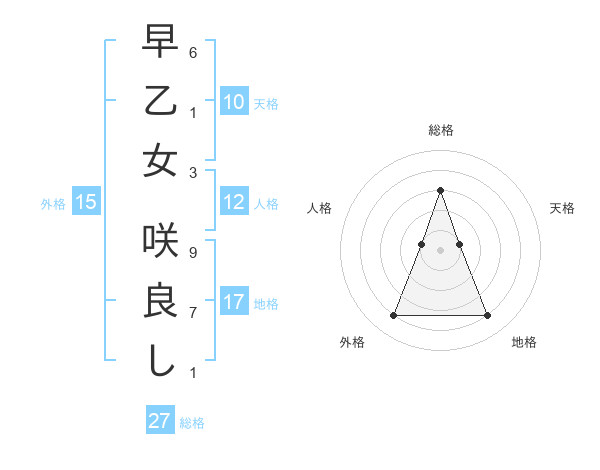 早乙女 咲良しさんを姓名の画数から五運を鑑定