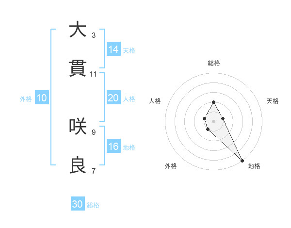 大貫 咲良さんの総格は30画の2点!