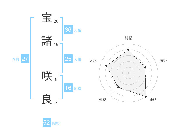 宝諸 咲良さんを姓名の画数から五運を鑑定