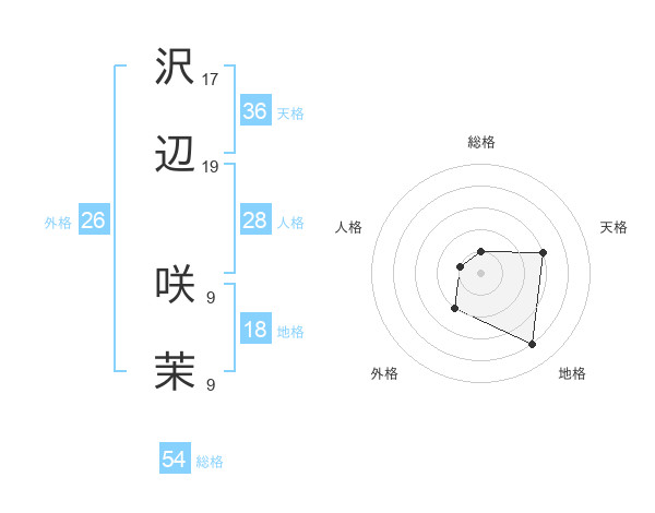 沢辺 咲茉さんの地格は18画の4点!