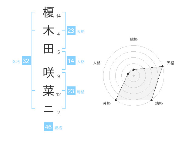 榎木田 咲菜ニさんを姓名の画数から五運を鑑定