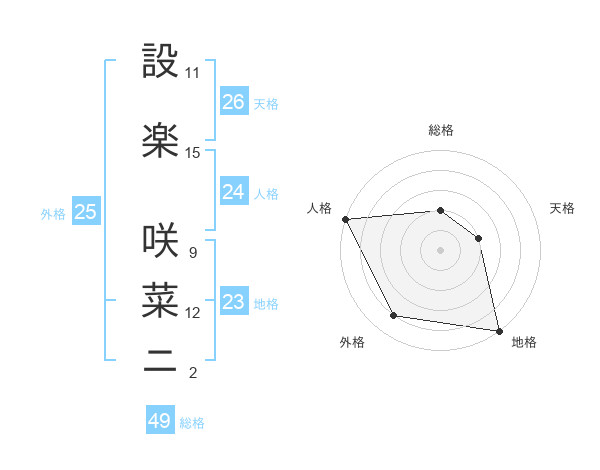 設楽 咲菜ニさんの総格は49画の2点!