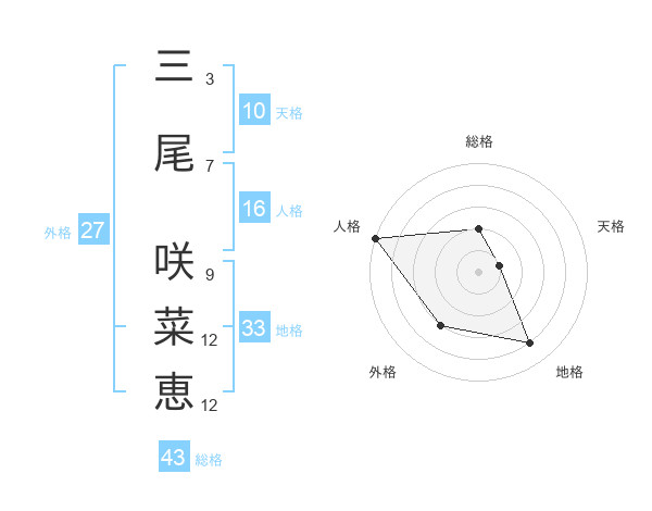 三尾 咲菜恵さんの総格は43画の2点!